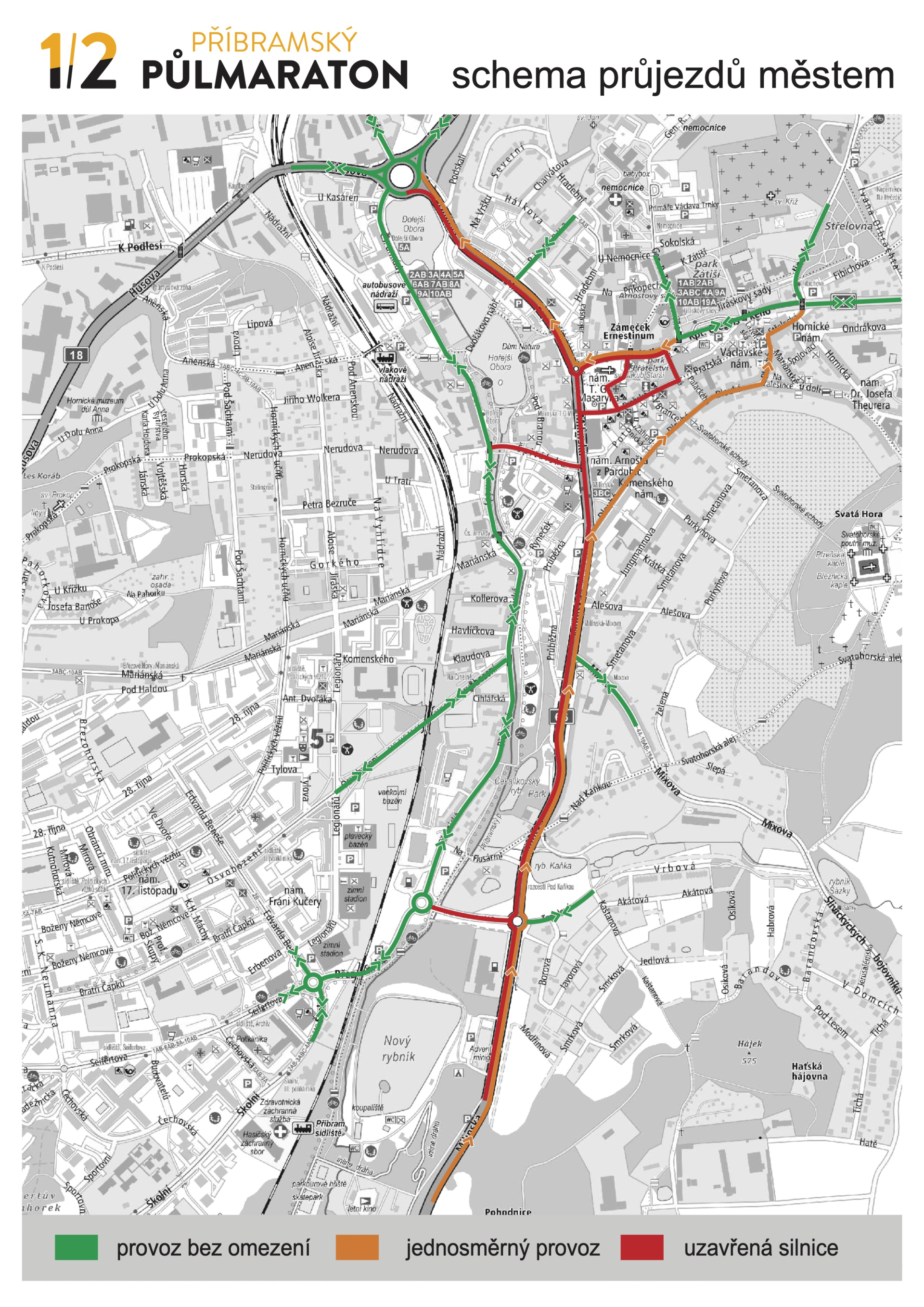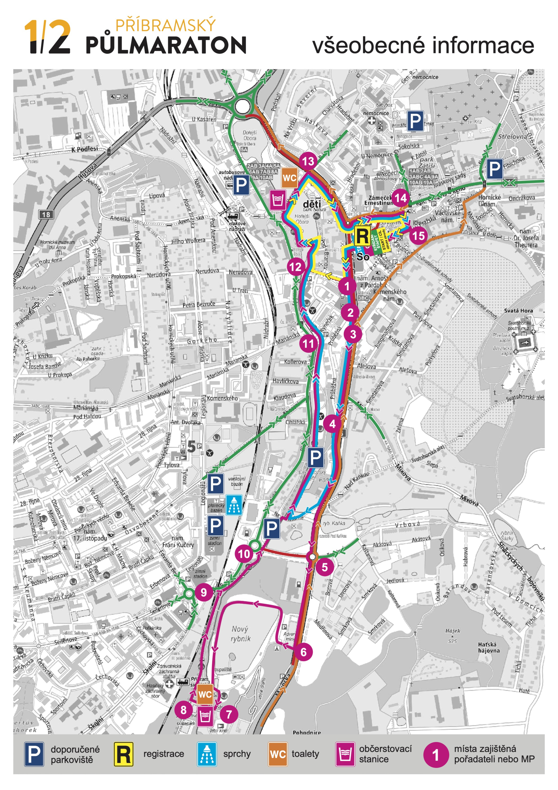 Mapa závodů – závody dětí, fitness běh i hlavní půlmaratonský závod a půlmaraton štafet
